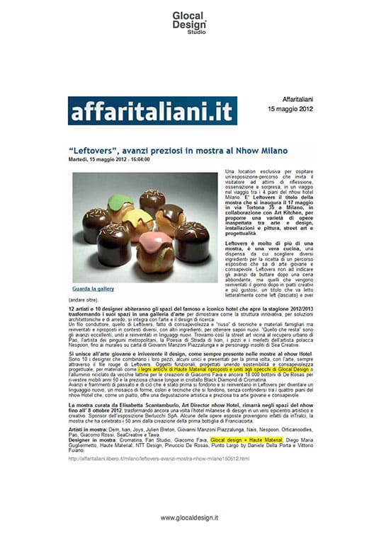 31 January 2017 Affari Italiani Other Press Coverage View Detail Harper's Baazar - Russia View Detail QUI View Detail Affari Italiani View Detail IDEA Share